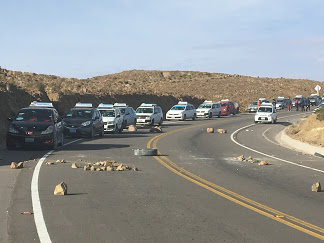 In the morning a man that worked on the bus came to my mom and said that we needed to get off and walk to town (only 15 mins) as there was a road block. We were a bit confused but got our bags and started to walk. It turned out to be a 2 hour walk (8 km). When we got to town we found out that there was a protest by the taxi drivers blocking the road.