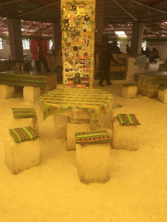 We finally reached our tour company, loaded the 4X4’s and headed out towards the salt flats. We learnt that deep deep under the salt is water from the sea from millions of years ago and this is where the salt is coming from. In summer the flats are covered in water but by winter the water has dried up leaving the salt. That night we slept in a salt hotel where everything was made out of salt bricks (I licked the wall a few times).