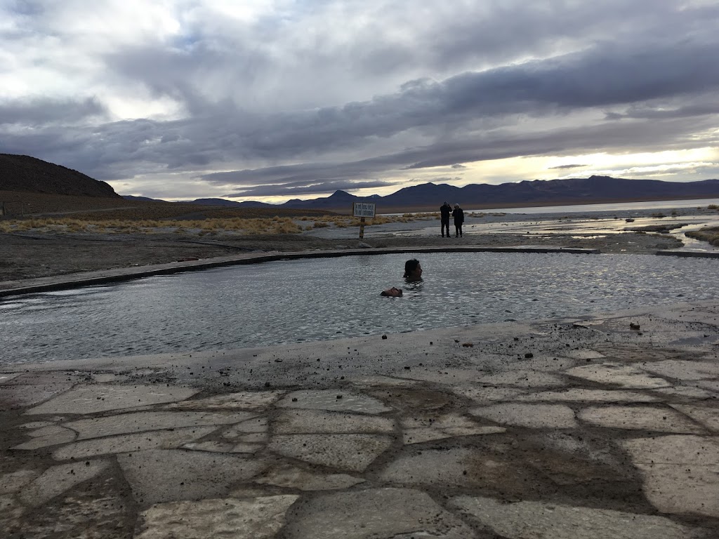 Early the next day we started at 04:30AM and went to the geysers which are a collection of boiling mud pots in the ground and sometimes shooting out muddy water to a height of approximately 3 meters.There was a lot of steam coming out of the ground. It was still dark when we got there and you could walk around freely but apparently some tourists fell into a hole and died a few months ago, so we didn’t walk around too much. After another hour driving we went to the hot spring, it was freezing outside and we sat in the warm water for sunrise. It was not fun getting out afterwards!!
