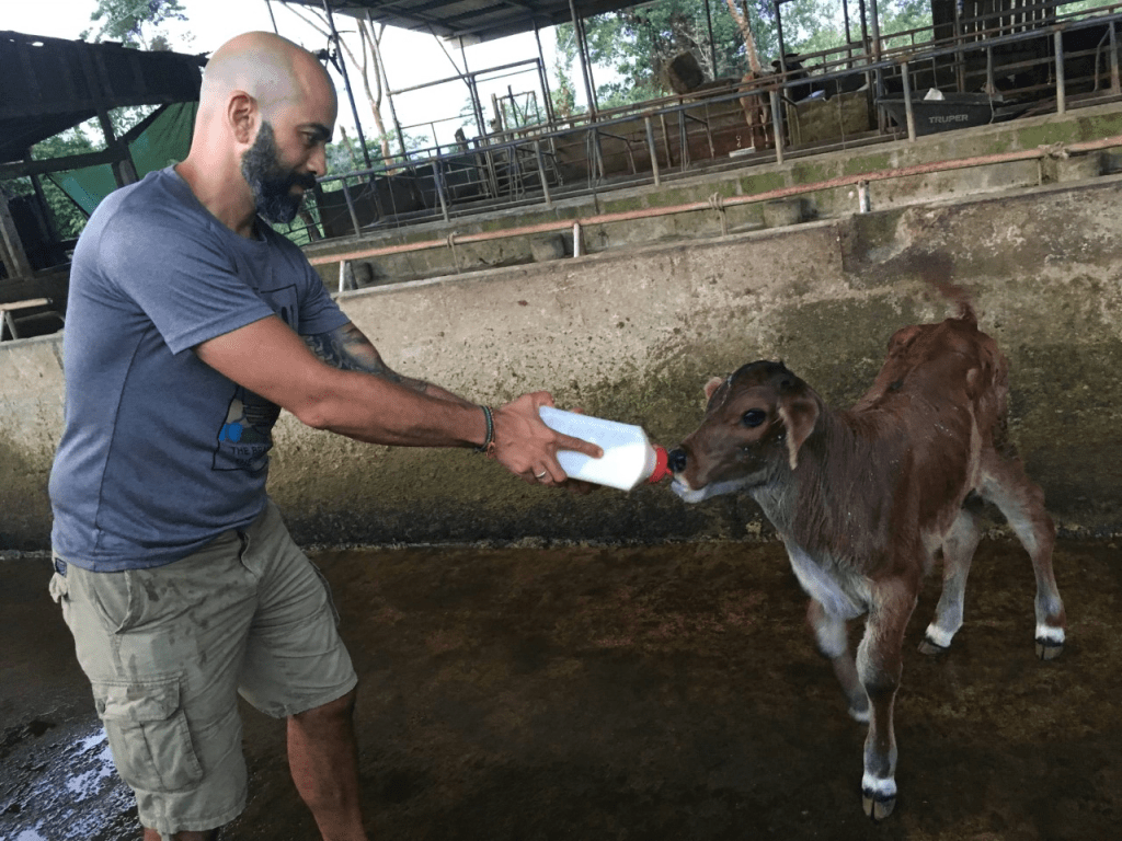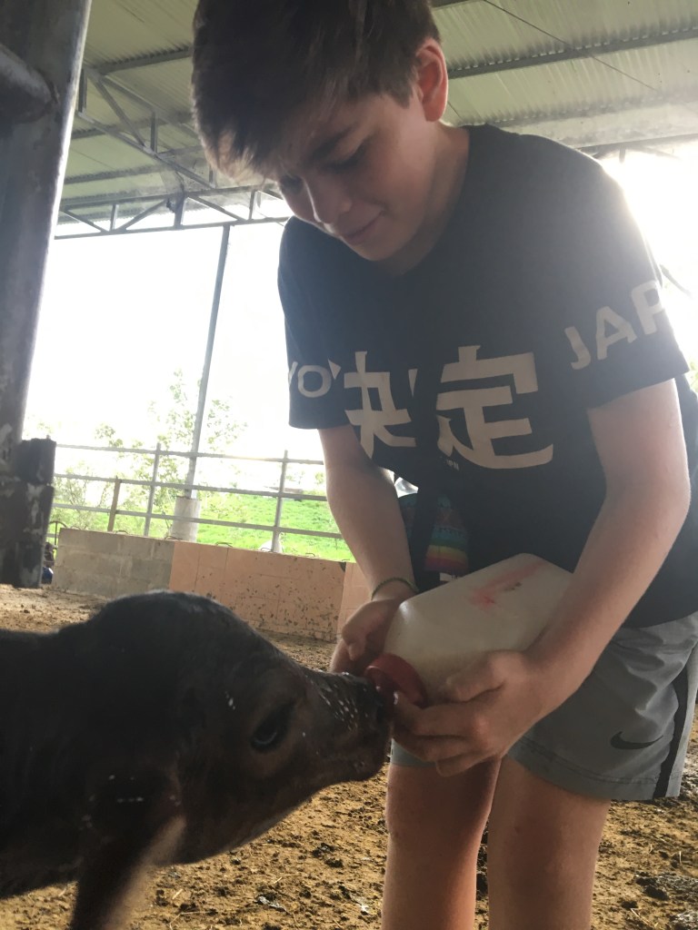 Some of the milk that was produced was mixed with some powder containing vitamins and bottle fed to the calfs.