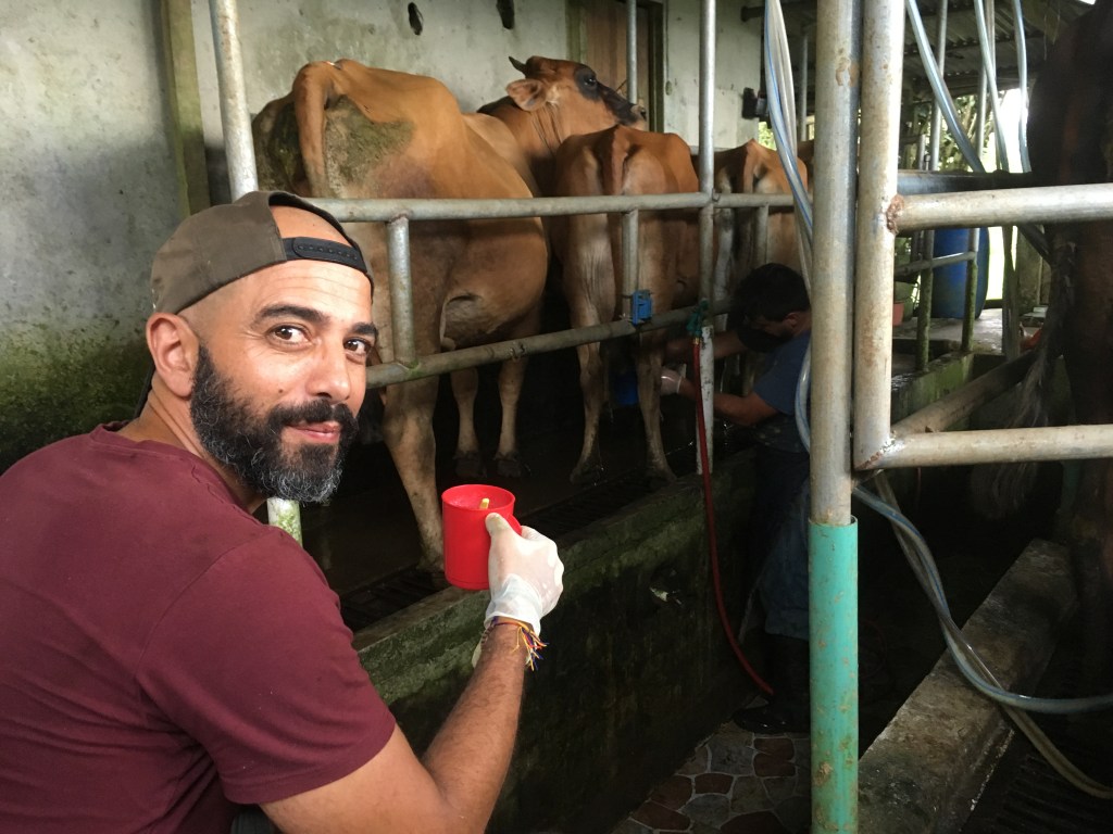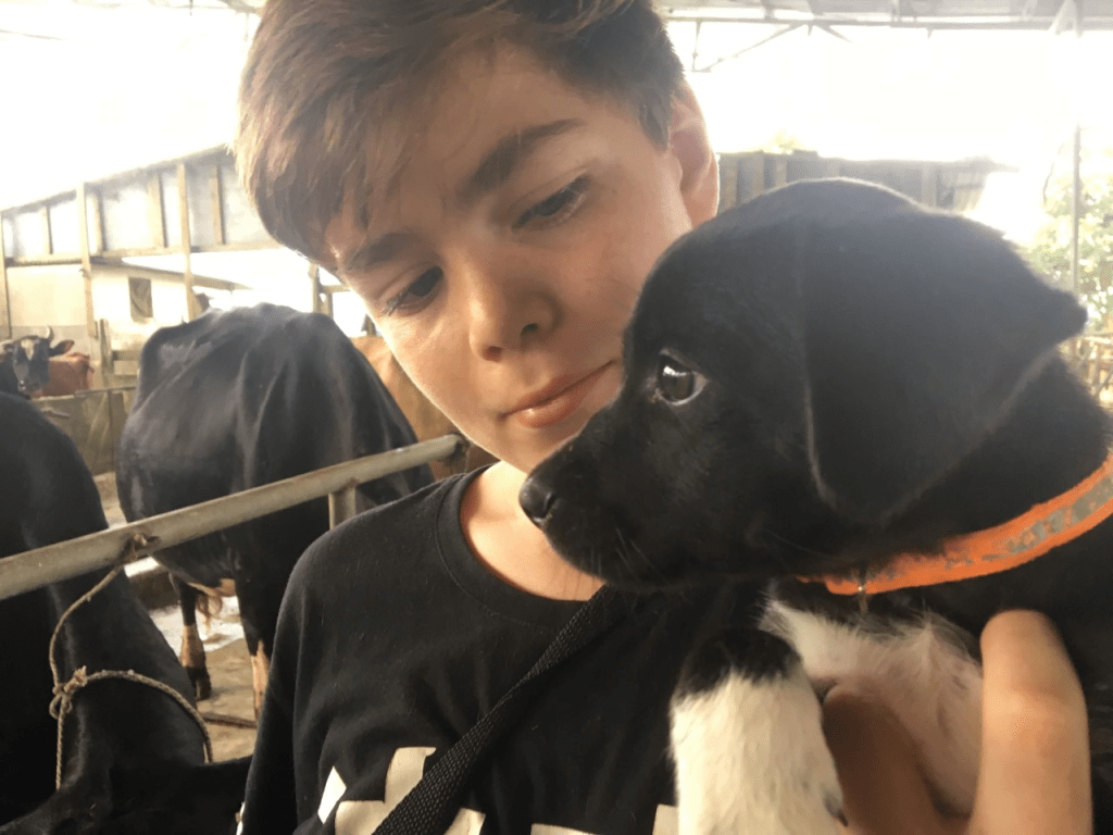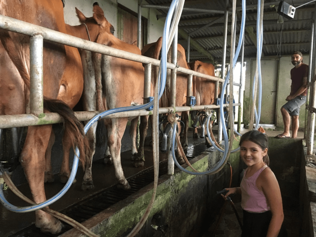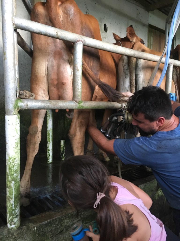 During our time there, we met the owner’s cousin, Agustín, who owned a dairy farm. Agustín invited us to see the process of milking cows. At the dairy farm ( La lechería) we were welcomed by a German Shepard and a small black puppy.
