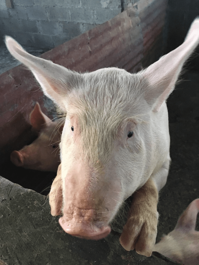 When all the cows had been milked and herded to the field, Dad used a high pressure hose to clean all the poo from the barn and milking area. We also got to hose down the three pigs in their pen.